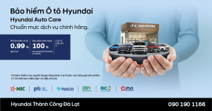 Sở hữu một chiếc xe Hyundai không chỉ là sở hữu một phương tiện di chuyển, mà là sở hữu sự an tâm trên mọi cung đường. Thấu hiểu điều đó, Hyundai Thành Công Đà Lạt mang đến chương trình bảo hiểm Hyundai Auto Care – giải pháp bảo vệ toàn diện với tiêu chuẩn dịch vụ chính hãng đẳng cấp.